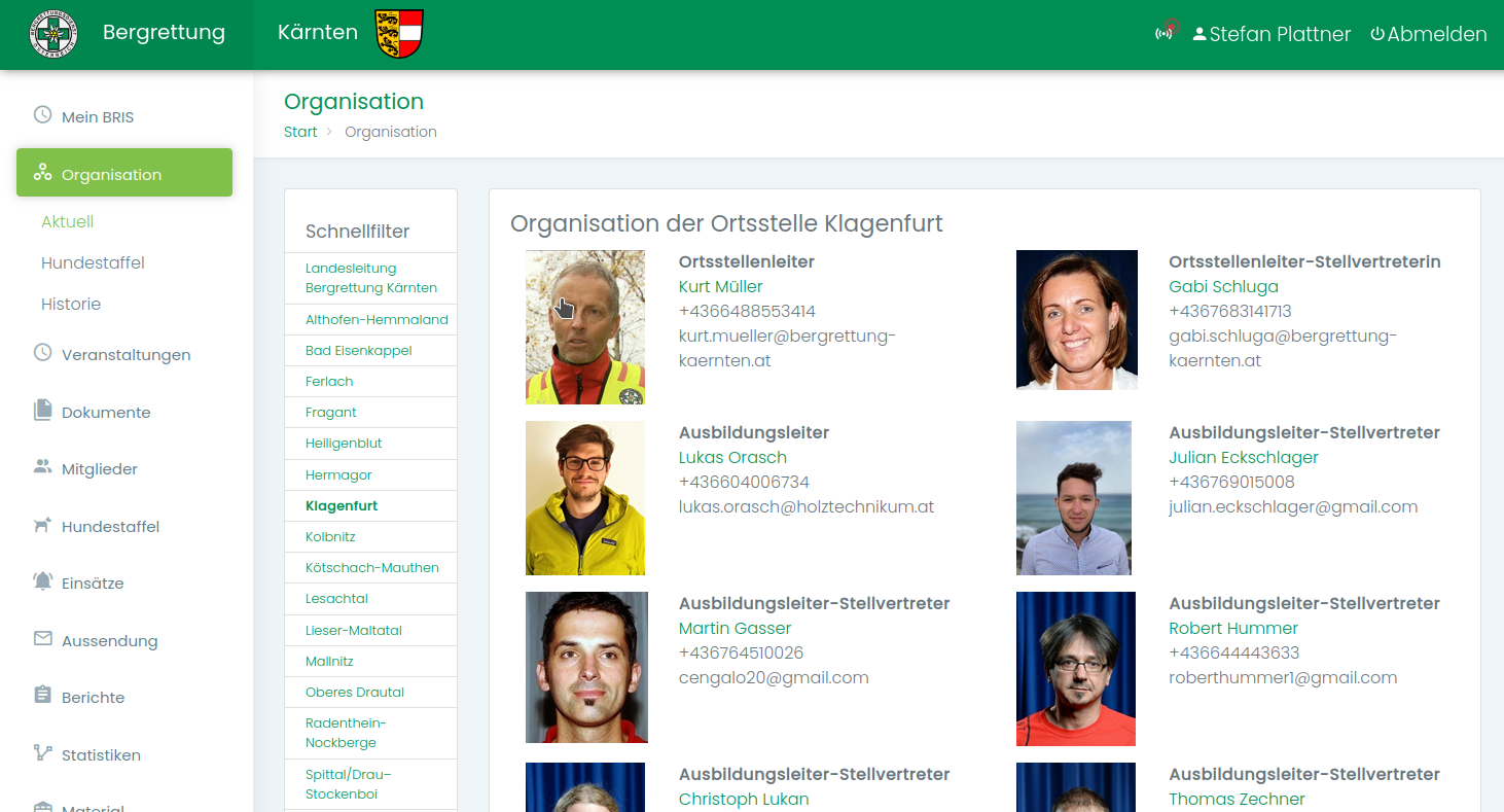 Hier kannst du die Organisationsstruktur bzw. die Funktionäre deiner Landesorganisation sowie der Ortsstellen einsehen.