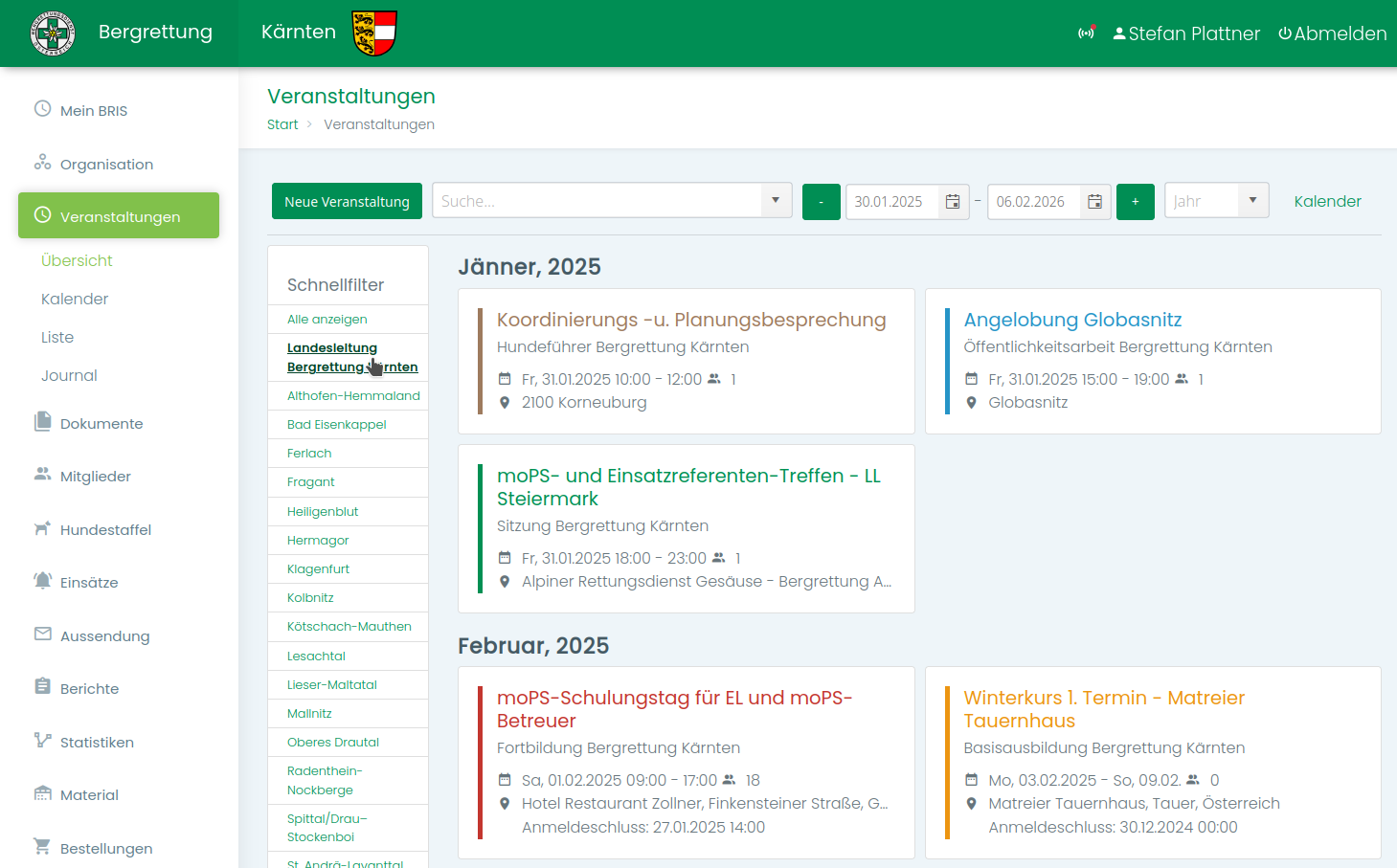 In diesem Funktionsmodul kannst du dir zu den Veranstaltungen und Kursen deiner Landesorganisation eine Überblick verschaffen und dich bei Bedarf auch anmelden.